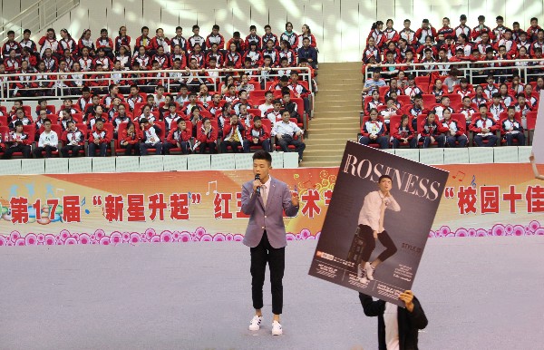 果香溢满校园,歌声响彻天穹。2017年5月5日下午,宝应实中第17届“新星升起”红五月艺术节开幕式暨第十二届“校园十大歌手”评选活动在学校白田路校区体育馆举行。沈寿鸿、戴军、李惊梅、马洪亮、韩国法、成晓明、石书贵等学校领导和初一、初二全体师生共3000多人参加活动。校体艺信息中心主任纪伟华主持开幕式,沈寿鸿校长宣布艺术节开幕。