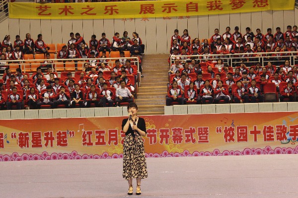 火红的五月,深邃高远;希望的五月,繁花似锦。“青春飞扬”卡拉OK大赛自4月份启动以来,在体艺信息中心各位老师的精心组织下,历时半个多月,经历了海选、初赛、复赛,在全校500多名参赛选手中产生了16强。闯进决赛的16强选手在“校园十佳歌手”评选活动中准备充分,异彩纷呈。选手们的参赛曲目风格各异:王可心、范钰萌的《一个像夏天一个像秋天》充满神奇魔力,闵磊的《一次就好》流淌着对青春岁月的依恋,杨静怡的《走着走着就散了》嗓音独特,情感充沛,古建烨的《倔强》充满朝气和力量,王相宁的英文歌曲《yesterday once more》深沉经典有魅力,王依彤的《棠梨煎雪》古典清雅,甜而不腻,张郭逸冰和王佳禾的《告白气球》甜美浪漫,程世欣的《给你宇宙》欢快清新,王绣程的《七里香》返璞归真中有伤感,张雨欣的串烧《We Will Rock You》+《我的王国》既有昂扬向上、震撼人心的炸裂节奏,又融入中东欧风情,多种曲风相互对撞,狂野和浪漫自由转换……整个体育馆掌声不断,高潮迭起。戴艺老师演绎的迪士尼动画《冰雪奇缘》的主题曲《Let it go》,歌声充满情绪张力,质感晶莹剔透,场景辉煌壮观,唱出了水晶般耀眼夺目的冰雪城堡,将现场的氛围推向巅峰。悦耳的歌声犹如飞舞的精灵,轻快灵动,书香四溢的实中成了欢乐的海洋。