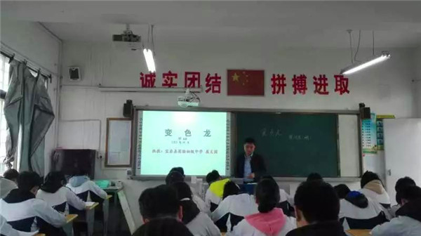 第一节、第二节课,实验初中部分语文老师、望中全体语文老师全程观摩了望中张忠林、实中展文国二位老师的同课异构课《变色龙》,两人皆以独特的视角,别样的风格,十分精准地剖析了奥楚蔑洛夫警官“善变”的特点和被小狗咬伤的赫留金的人物形象,水到渠成的揭示了主题,亮点纷呈。实中杨权应副校长等两校老师进行了评课,对两人展示的启发学生、驾驭课堂的技艺予以高度评价。