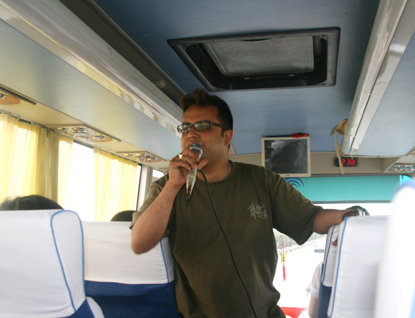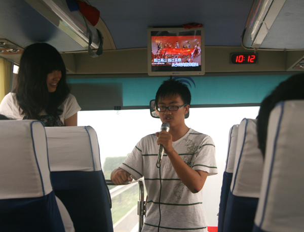 在前往北京的一路上,师生们在车上开展了一系列互动游戏活动,领队扬州总校党总支副书记颜景榴宣布了本次夏令营活动安全注意事项和学生活动安排。本次夏令营,学生们除了参加旅行社安排的旅游活动外,还将以小组为单位,参加五项特殊活动:“说”的活动——“一路玩,说见闻”;“写”的活动——“品文化,写游记”;“摄”的活动——“看世界,摄精彩”;“唱”的活动——“走四方,唱天下”;“学”的活动——“做游戏,学英语”。其中在“学”的活动中,今天在车上,两名外教来自尼泊尔的KANAK和澳大利亚的RAYMOND分别与学生们进行了英语互动交流。一路上,学生们通过中英文自我介绍,加深了相互了解,通过唱歌表演、做游戏等形式高高兴兴地开始了北京和上海的游学之旅。