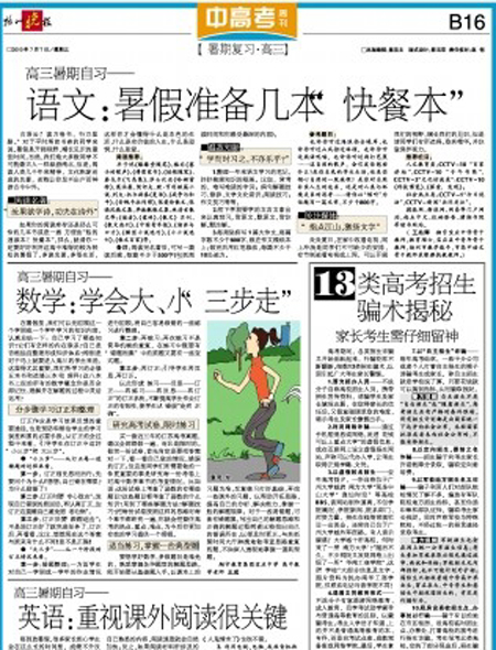 烈日炎炎,长达两个月的暑假里,气温、聚会、旅游、网络等构成了成绩下滑的因素,同学们往往一玩起来,就收不住心了,开学后也很难进入状态。如何在玩中学,学中玩,如何合理安排时间,如何对剩余的课程进行预习,对于准毕业生来说,这个暑假至关重要。基于此原因,6月30日以来,《扬州晚报》开辟暑期学生学习指导专栏,翔宇高中部与初中部多位名师应邀对各学科学习生活提出了针对性指导。