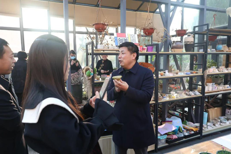 在同美园傅校长向来宾介绍,同美园由阳光菜园、创美空间、萌兔乐园三部分构成,是孩子们体验实践和审美创造的地方。访问团掏出手机对着满屋子的多肉和陶艺作品一阵拍摄。“这里真是太美了!”“有这样一处孩子们寻美、创美的空间,难怪曙光的孩子们这么落落大方,文明有礼”。