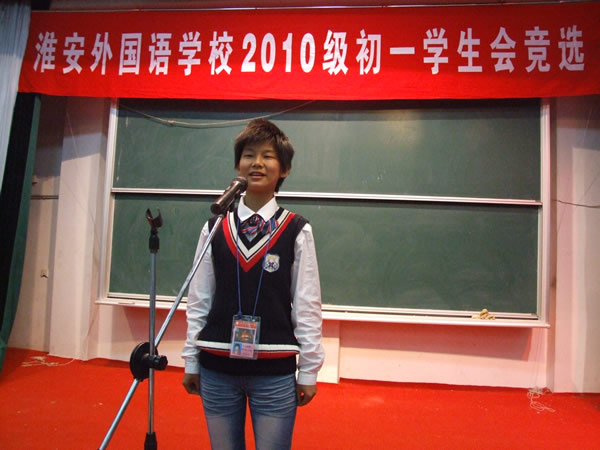 金秋十月,淮外校园天高气爽,丹桂飘香。经过层层选拔,激烈角逐,淮安外国语学校2010级初一年级学生会于9月29号正式成立。