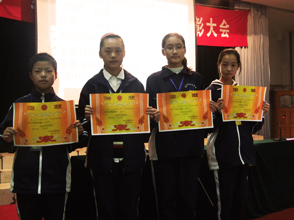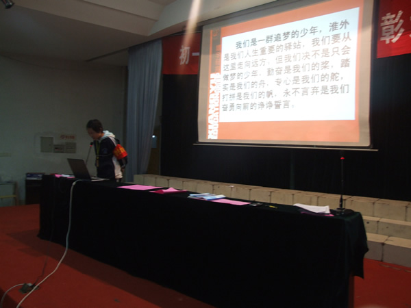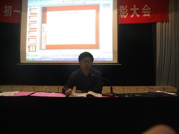 大会在《超越梦想》的歌声中拉开帷幕,歌声嘹亮,响彻心扉。吴寿健主任首先带着同学们回忆了过去一个月的难忘场景:军训的磨砺、淮外三宝的学习、校外行走的锻造、文明礼仪等日常行为的规范、快乐课间的举行、月综合素质比武的适应……吴主任希望同学们珍藏人生的每一次经历,学会去适应,去尝试,去挑战,去超越。年级分管教学的成学斌主任宣读了表彰决定,对学生过去一个月的德、智、体等方面进行总结和表彰,并为相应的学部、班级、合作小组、学生个体颁发了奖状。最后,他还勉励学生:世界上所有的成功都是拼搏的结果。天道酬勤,一份耕耘,一份收获。上帝只青睐有准备的头脑。希望同学们勤奋努力,争取获得更大的成功和进步。王媛媛、杨晓冬作为学生代表分别作了发言,与大家分享了他们在淮外成长的感受,他们认为“态度决定高度,效率决定质量,细节决定成败,读书改变命运,技巧辅助人生”,引起了同学们强烈共鸣。