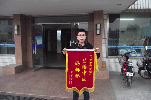 11月24日,淮安外国语学校初二(17)班辛利佳家长将一面绣有“赠淮安外国语学校牛震红老师‘生活中的好妈妈’”的锦旗送到了学校,感谢宿舍生活老师牛震红对孩子生病以来无微不至的照顾和关怀。