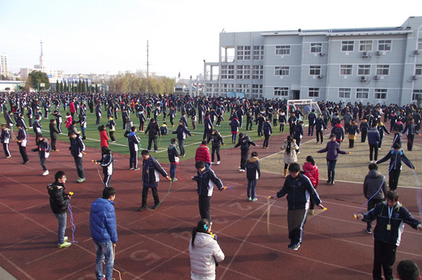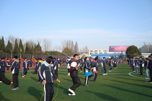 淮安外国语学校初三年级继12月14日拔河比赛活动之后,12月18日又在运动场面向全体师生开展了“‘绳’彩飞扬,阳光快乐”为主题的跳绳比赛暨快乐课间展示活动。