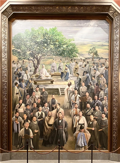 下午,老师们来到了教育圣人孔子的诞生地——尼山圣境。远远的,大家就看到了高大的孔子雕像,退台式的建筑十分美观,颇具古典韵味。进入大学堂之后,大家惊叹建筑内部的华丽和精美。老师们参观了集贤厅、七十二贤廊、仁厅、义厅等文化空间,欣赏了雕塑、刺绣、漆画、书法、景泰蓝等艺术作品。解说员细致地讲解了孔子及其弟子的典故,阐释“因材施教”等教育理念。老师们听得非常入神,从中获得教育的启迪和心灵的顿悟,对孔子的教育思想有了更多、更深的理解。他们表示,将在日常教育生活中践行这些先进的理念和思想,从而培养出更多、更好的栋梁之才。
