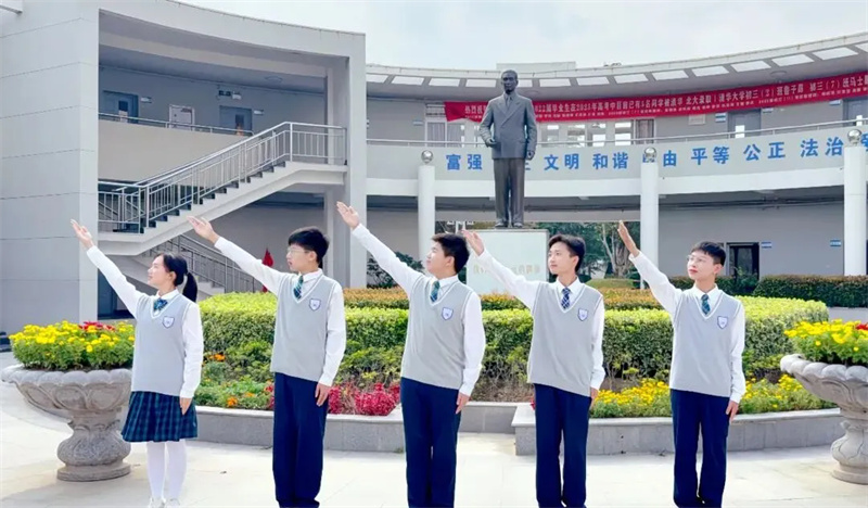 “爱祖国,守初心,有担当,做新时代的追光者......”庄严的广场上,鲜艳的红旗下,淮外学子的声音响彻校园上空。学生们远大的人生理想和强国有我的报国志向油然而生、生生不息。