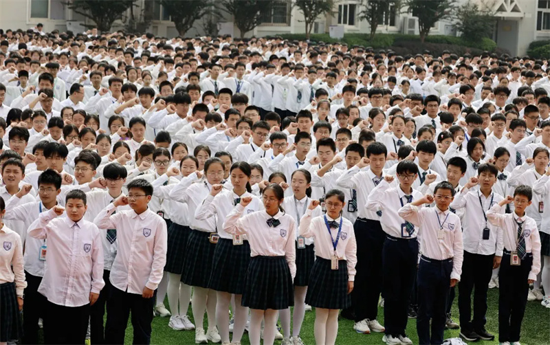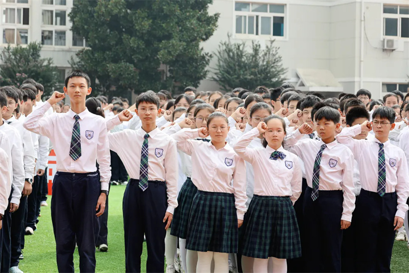 集体宣誓,立下青春之志。“笃学求真,不负韶华,循‘和整个世界站在一起’的理念,强我体魄,振我精神,以青春之我筑青春之国......”每一句誓言意味深远,每一个声音铿锵有力,少年心中的志向更加明晰。