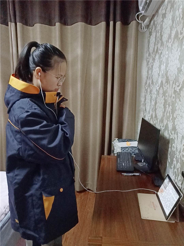 “星期一,我们集结于此,用一场庄严而神圣的线上“升旗仪式”,致敬亲爱的祖国,致敬英雄的城市,致敬前方的医生,致敬勇敢的人民,致敬伟大的时代。开学延迟,我们对祖国的爱,不延迟。线上“升旗仪式”,现在开始!”主持人铿锵有力的话语,同学们不禁肃然起敬,在家中面向直播中的国旗肃立,高唱国歌,行注目礼。虽然升旗形式有变,但不变的是我们热爱祖国、热爱国旗的赤诚之心。
