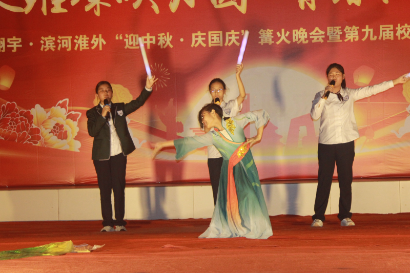 在九月即将逃走,十月踏秋而来的一个夜晚,涟水滨河外国语的校园里,一团篝火点亮了夜空,点燃了千余名师生的激情。一场 “庆国庆·迎中秋”篝火晚会暨第九届校园文化艺术节开幕表演,以意想不到的创意编排和青春表达,打破传统晚会的边界,成为一场融合中国风、潮流与情怀的“青春共创大秀”。
