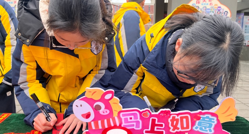 晨光里,田学银校长、英昌磊常务副校长、范洪雷校长助理等领导和老师早早守候在校门口,将一枚枚刻有奔马图案与励志寄语的专属书签和新学期的美好祝福亲切赠予每位学子。一张张笑脸在春风中绽放,一声声“老师好”在校园里回荡,久别重逢的喜悦与对新学期的憧憬交织成一首欢快的青春序曲。