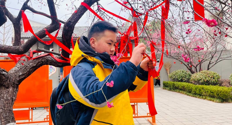 苑落里,孩子们郑重写下新学期的希望,将他们挂在心愿树上,清风阵阵,吹起的不仅仅是心愿卡,更是滨河淮外学子奋发向上的见证。