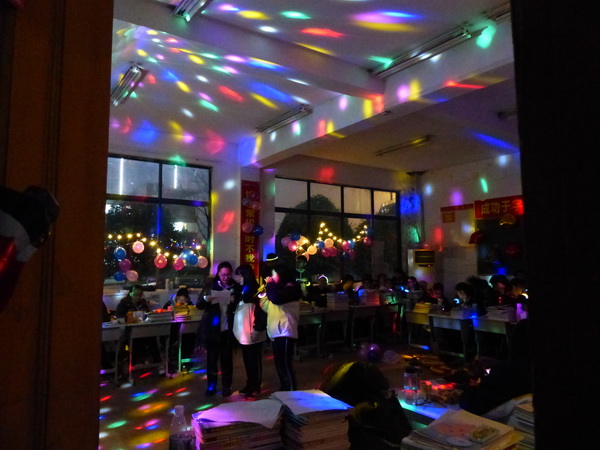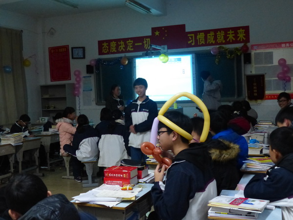 与同学们一起感受愉悦的节日氛围,覃忠校长与黄尚银副校长带领德育处一行挨班观摩欣赏同学们精心准备的节目,多次被同学们的卖力表演逗乐。同学们健康成长,积极向上,是覃校长和所有领导的共同心愿与期盼。
