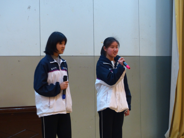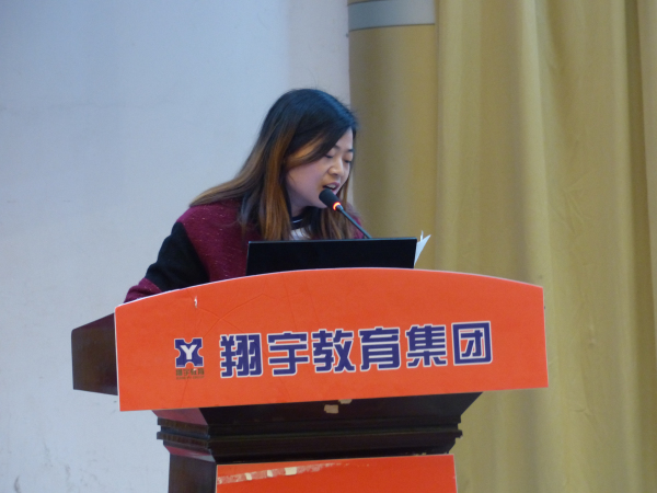 会议在高一(1)班杨扬帆、张睿等同学轻松、欢快的中英文诗朗诵和英文歌曲中拉开帷幕。接着,办公室副主任张见亭用条块明晰的“新气象、新面孔、新举措、新成绩”,生动演绎校园回眸版块,带领大家一同回味紧张而有序的精彩过往。