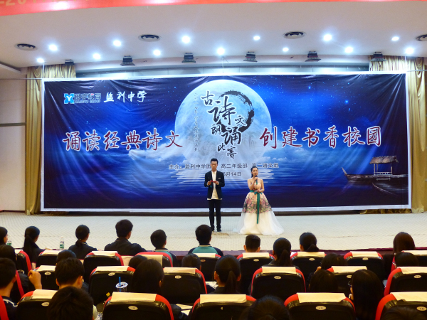 初夏的习习凉风送来阵阵馥郁花香,似乎穿越千年,亘古绵延,清逸悠远的琴声在校园上空余音切切,回味绵长。5月14日晚,监利中学在会议中心隆重举行“诵读经典诗文,创建书香校园”古诗文朗诵比赛,高二全体师生浓情演绎一场视觉与听觉完美融合的饕餮盛宴。