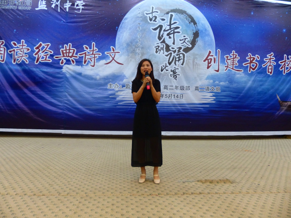 “本次活动,提高了同学们的朗诵水平,锻炼了个人素质,培养了自信心,也加强了团队合作精神。希望同学们以此为契机,从此爱上古诗文,爱上语文。”朗诵结束,高二年级副主任曹艳老师作精彩点评。