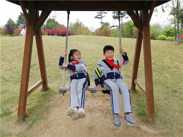 四月的滨湖公园,春意融融,暖风吹皱一池春水,柳枝浮起袅袅绿烟。柳树下嬉戏的孩子,秋千上惬意的笑脸,轮胎公园里紧张的角逐,每一幅画面都是都是春的一角。滨河淮外小学部的全体师生漫步在这如诗如画的美景中,尽情感受春光的美妙。