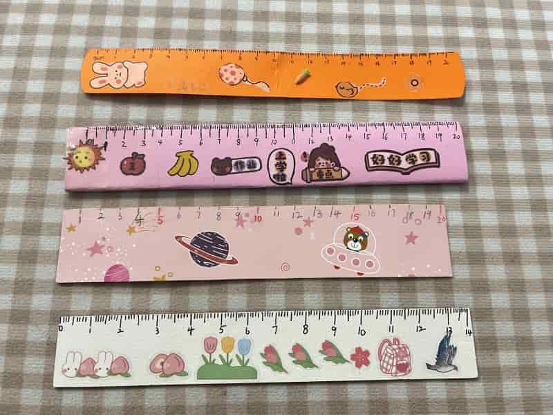 还有的小朋友在小尺里面加上了亮晶晶的闪片,还贴上了好看的胶带,整体看上去活泼又有趣,十分精美。