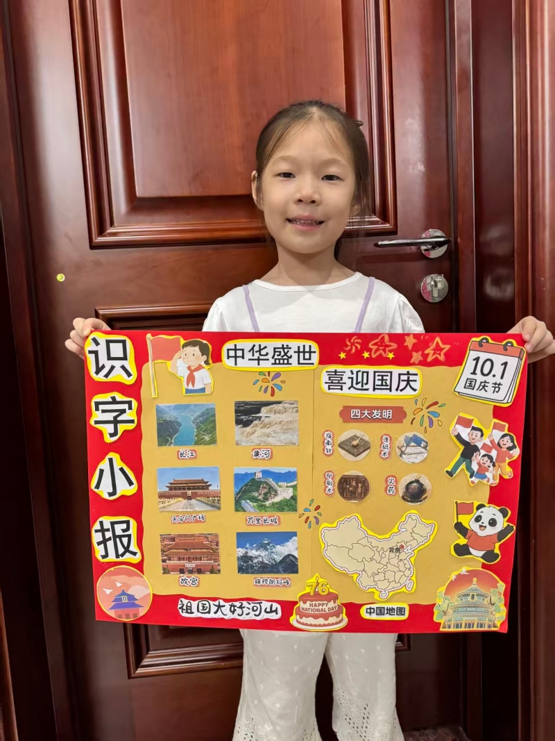 金秋的阳光像柔软的蜂蜜,洒在每一张兴奋的小脸上。在祖国妈妈76岁生日到来之际,滨河淮外小学部一年级的小朋友们举办了一场别开生面的“汉字小精灵贺国庆”识字小报活动!就在这充满欢声笑语的节日里,他们拿起五彩的画笔,要用刚刚认识的汉字好朋友,为祖国妈妈“拼”出一封最美丽的信,带他们心中最神圣的地方旅行。