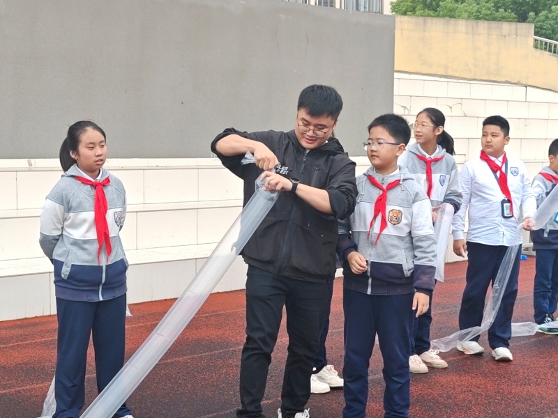 伯努利吹袋实验充满互动乐趣。用传统方法吹2米长的袋子,大家虽奋力吹气,袋子却难以吹满。而当沈思润同学运用科学方法上台尝试时,袋子被迅速吹满。原来掌握科学知识,能让看似困难的事情变得轻松,同学们深刻感受到知识的魔力。