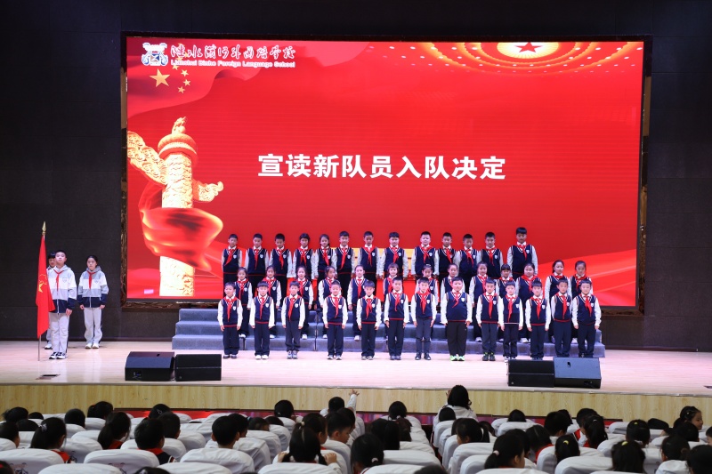 10月29日下午,滨河淮外小学部隆重举行主题为“童心向队,薪火相传”2024级第二批新队员入队仪式,240名预备队员在全体师生的见证下,光荣加入中国少年先锋队。