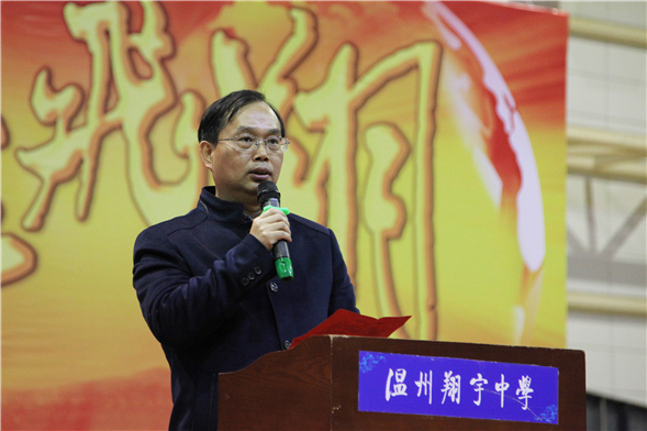 “很荣幸,见证你们中考誓师的庄严时刻!”学校校长戚成林也到会场送来祝福,勉励同学们以少年恩来为榜样,敬畏诺言、志存高远、严格自律、百折不挠,以成功的奋斗过程,去预约“功成”的欣慰喜悦。