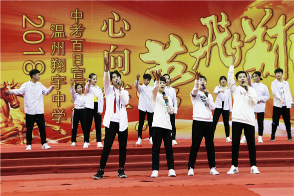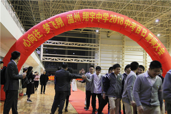 带着狗年大吉的喜庆,带着对美好未来的憧憬。2018年3月6日晚,温州翔宇初中部校长戚成林,校长助理吴志俊、湛晶以及初三全体师生欢聚一堂,举行迎中考百日冲刺誓师大会。“这是圆青春梦想的动员令,这是激扬人生志气的进军号,这是表达必胜豪情的奏鸣曲。”大会由胡天泽,王铭晨两位同学主持。