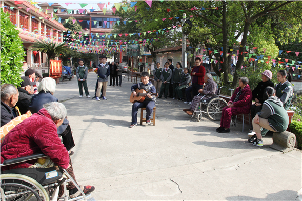 在敬老院里,同学们有的协助院工作人员打扫卫生,有的陪老人们聊天,听他们讲述年轻时候的故事以及现在的生活健康状况,不仅如此,孩子们还为老人们准备了一份小礼物,随着音乐响起,他们表演了集体舞、吉他弹唱、朗诵、吹葫芦丝演奏、拉丁舞等节目,赢得在场老师和工作人员阵阵掌声,“看到孩子们阳光灿烂的笑脸,我们也情不自禁回忆起年轻的时光。翔宇真了不起,孩子们不仅成绩好,还如此多才多艺。”