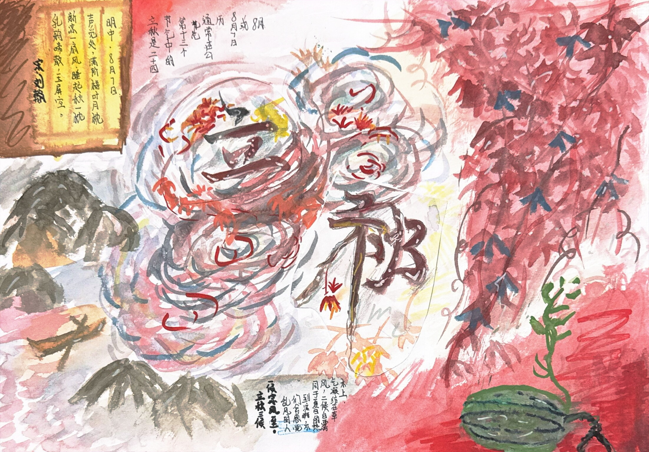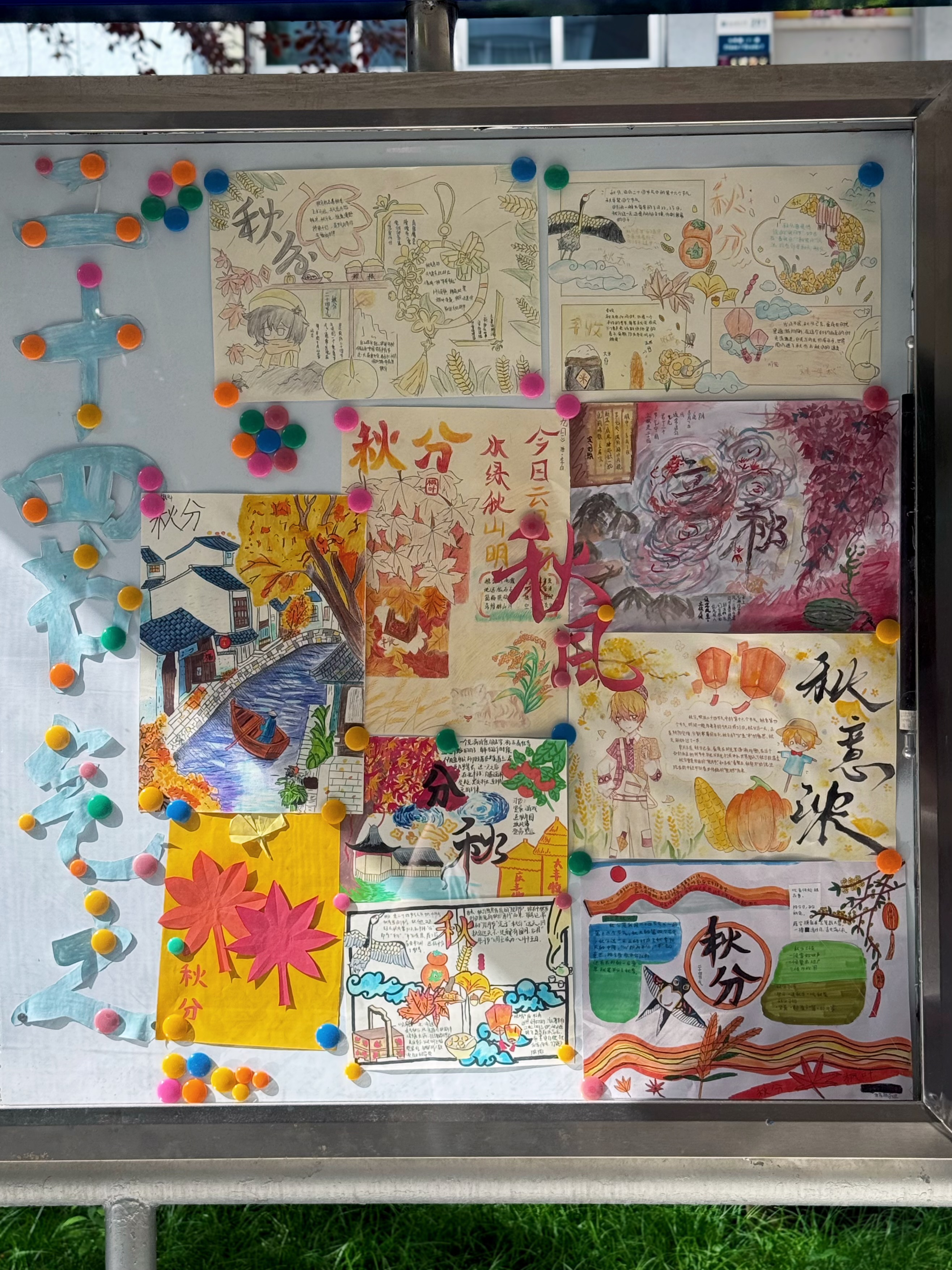 八年级11班在班主任周培培老师带领下,举办了别开生面的立秋主题实践作品展。展览包括精巧的剪纸作品、内容丰富的手抄报,以及令人眼前一亮的 "晒秋" 房院模型。
