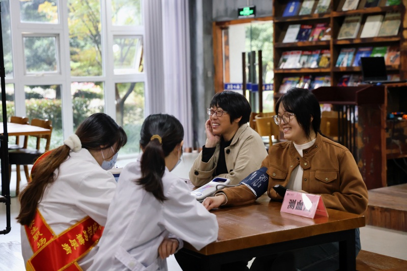 本次活动于上午10:30在瓯江书院正式启动,持续至中午。义诊现场秩序井然,专家们耐心细致地为前来咨询的师生答疑解惑,内容涵盖体检报告解读、常见病问诊、血糖血压测量等多个项目。不少老师利用课间休息时间前来咨询,纷纷表示这样的活动“贴心、实用,真正把健康送到了身边”。