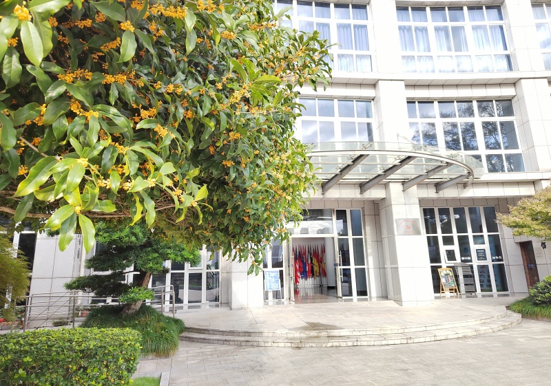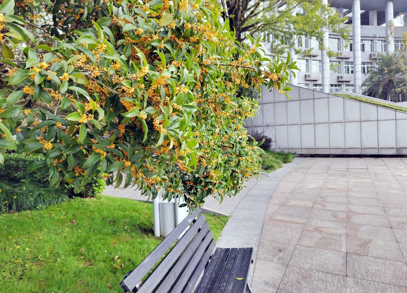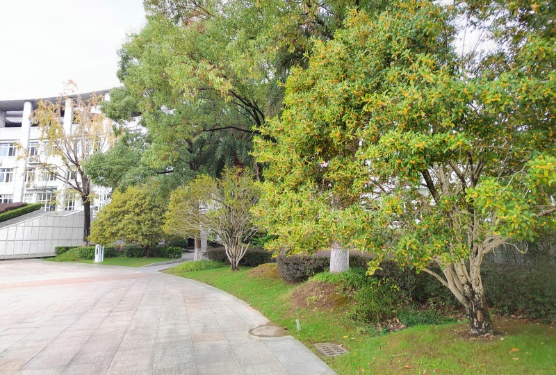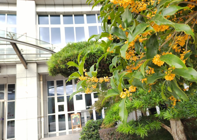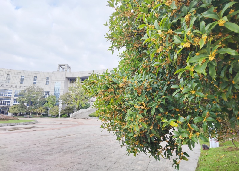 前一日绵绵秋雨浸润大地,校园内的花卉树木饱饮甘霖。经过一夜休整,地球广场周边近十株桂花树率先吐露芬芳,金黄细碎的花朵缀满枝头,微风拂过时,甜香四溢。正值午间用餐时段,中华灯谜馆门前一株高大的桂花树香气尤为浓郁,飘散至香橼大道,引得途经师生纷纷驻足深呼吸。有学生笑称:“闻着桂花香去食堂,饭都多吃了一碗!”桂花大道两侧的桂树亦不甘示弱,绵延数十米的馥郁香气,让师生们行走其间顿感神清气爽,学习工作的疲惫一扫而空。