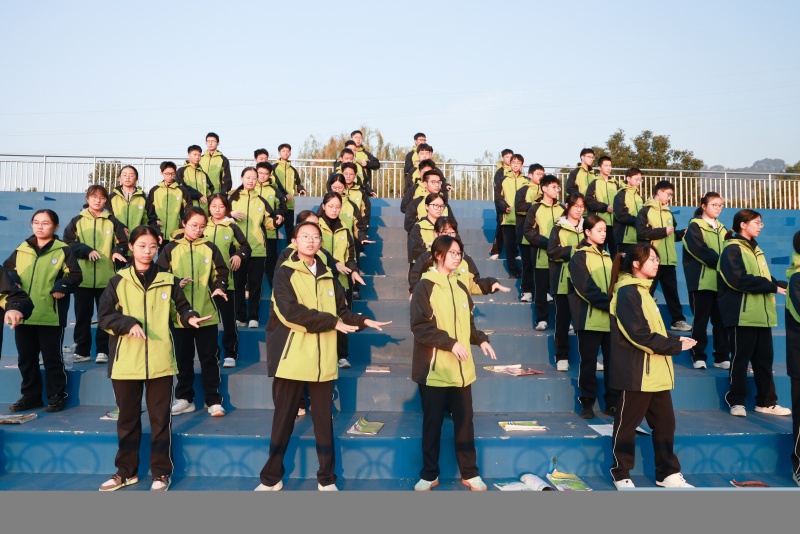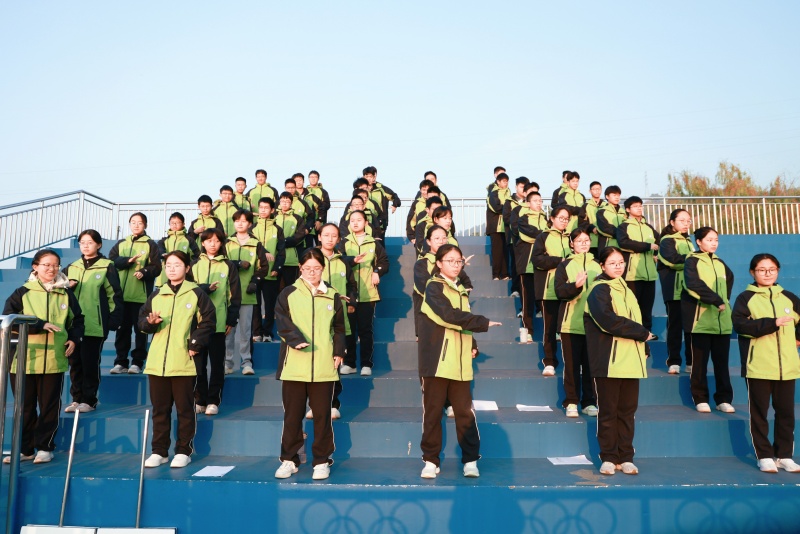 仪式最后,高一(10)班、高二(11)班、高一(12)班同学带来了精彩的课间桌舞展示。台上同学动作整齐、充满活力,台下同学积极响应、热情舞动,整个运动场洋溢着青春的朝气,用跃动的身影诠释了“温暖同行”的主题内涵。