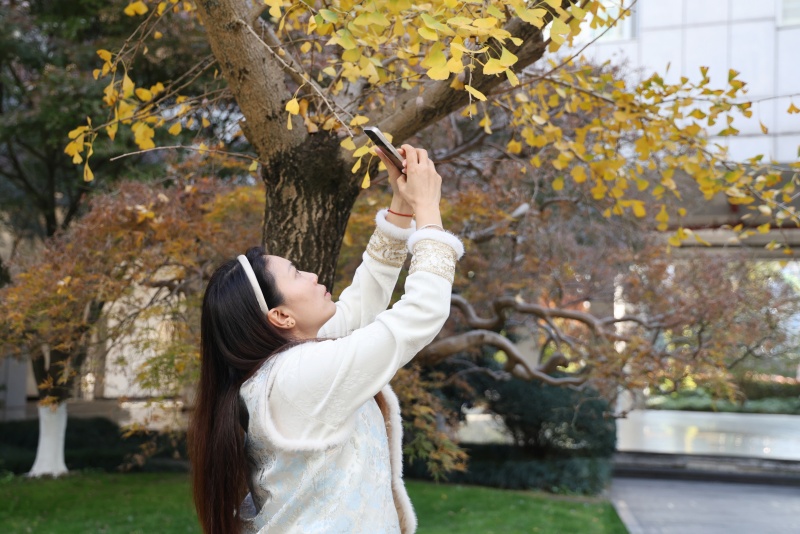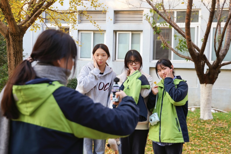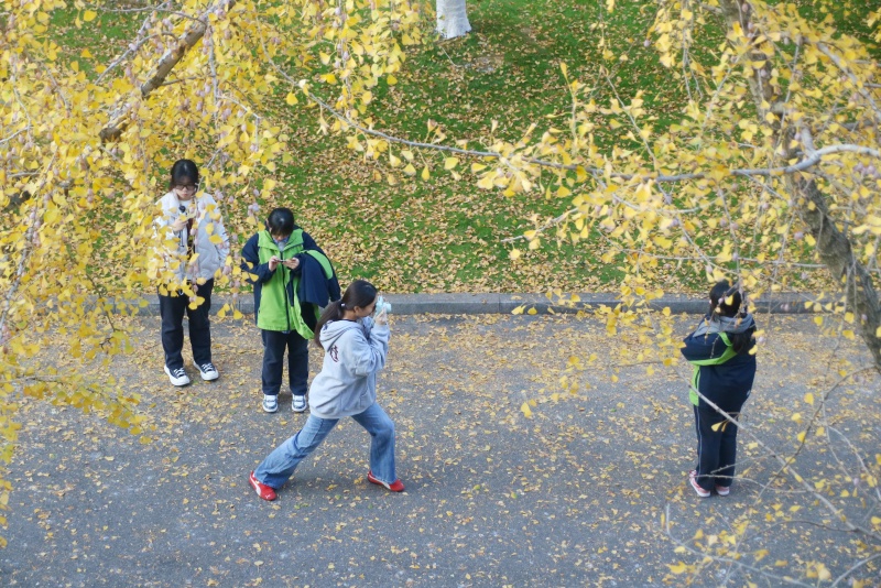 这份期盼已久的秋日盛景,瞬间点燃了校园的活力。课余时间,银杏大道上人影绰绰,欢声笑语不绝于耳。同学们三三两两,或漫步于铺满落叶的金色地毯上,聆听脚下沙沙的秋日私语;或兴奋地举起相机,以璀璨的银杏为背景,记录下与同窗、师友共度的美好瞬间。教师们也纷纷加入这赏景的行列,在繁忙的教学工作之余,于此感受自然馈赠的宁静与诗意,与学生们一同分享这份季节限定的惊艳。