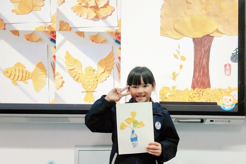 更为生动的是小学部的孩子们。他们不仅用眼睛欣赏这份美丽,更用巧手赋予落叶新的生命。弯腰拾起形状各异的银杏叶,经过简单的清洁、压平、构思,一片片金黄的叶子在孩子们手中化身为一枚枚独具匠心的书签、一幅幅充满童趣的贴画。这既是自然美育的生动课堂,也让秋天的记忆以更具创意和温度的方式被留存下来。