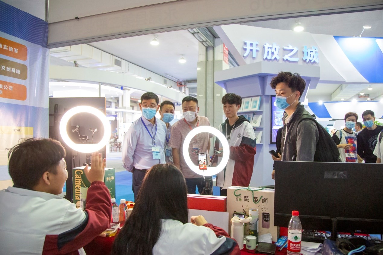本次参展项目达20余件,全面展示了我院八大创客工作室的丰富成果。机械电子研发中心的电子创客作品、小风扇定制、纸模造型、导游机器人,广告与动漫制作中心的文创作品,木雕与泥塑工作坊的木雕作品,手工艺制作中心的皮具、扎染作品,电商运营中心的直播带货,微电影制作中心的微电影展示,虚拟现实中心的VR体验项目等。