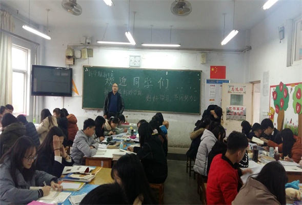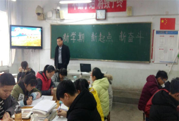 3月4日下午2:30,高二级部全体班主任按时在教室里等候学生的到来,黑板上写着醒目的标语,为同学们营造了温馨的家园氛围,同学们脸上洋溢着幸福的笑容。