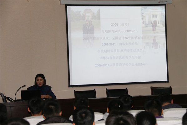在近1个小时的报告中,唐翠学姐对在座的学生以“学弟学妹”相称,一下子拉近了与同学们的距离,然后她用鲜活的训练事例、真挚的语言、丰富的情感和生动的讲述敲开了学生的心扉。她谈到在我校就读期间如何加强体育训练时感受颇深,她说:“不流汗就留遗憾,不练的眼冒金星,就没有金色的奖牌等你!不练的腰酸背痛腿抽筋,就不会肌肉强劲有力!不练的反胃呕吐又缺氧,就不会心肺体能提高!唐僧历尽磨难才取得真经,成功的道路没有捷径,教练同情你,赛场不同情弱者,老师可怜你,社会不可怜你!”在被清华录取之后,她的感悟是:成功的秘密并不是秘密,那就是不停地做,坚持不懈的做。简单的事情重复做,重复的事情用心做,如果你真的努力了,目标明确了,你会发现自己比想象中的优秀!在与同学们的互动环节,就体育特长生如何加强体能育训练及提高运动水平等问题与学生耐心交流。
