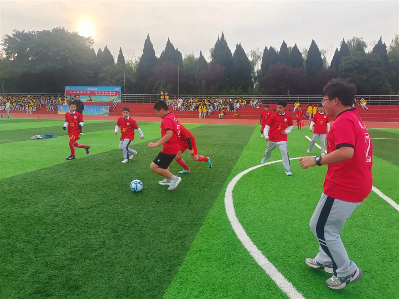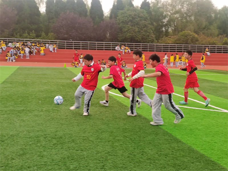 随着裁判一声哨响,各班级代表队迅速进入状态。篮球场上,队员们攻防有序、配合娴熟,精准的传球、果断的抢断、迅猛的上篮,每一个动作都引来场外阵阵欢呼;足球场上,小将们脚法灵动、奋勇争先,巧妙的盘带、默契的传切、有力的射门,展现出扎实的运动功底与昂扬的竞技姿态。赛场上,队员们不畏强手、顽强拼搏,摔倒了迅速爬起,落后时绝不气馁,用实际行动诠释着“友谊第一,比赛第二”的体育精神;赛场边,各班啦啦队呐喊助威、鼓声雷动,加油声、喝彩声、掌声交织在一起,成为校园里最动听的旋律。