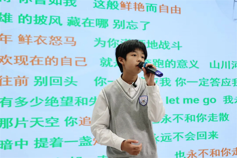 会议伊始,学校为四位教职工举行了集体生日庆典祝福活动。赵树青校长和校务会成员为他们送上精美的贺卡、蛋糕卡和鲜花并合影留念。来自初一(6)班的龚敬沣同学带来了歌曲《致未来的我》,他落落大方的姿态与动听的歌声充分展现了淮外学子的精神风貌。