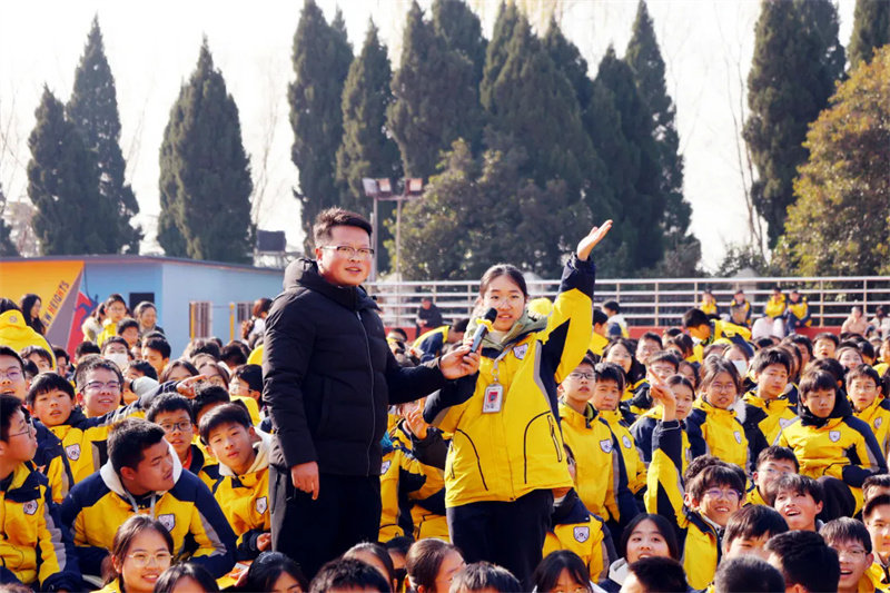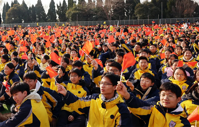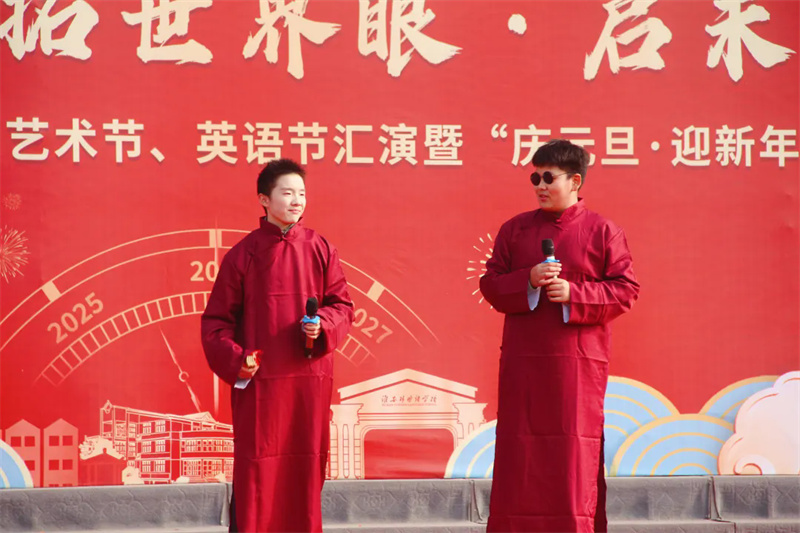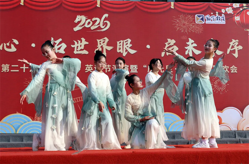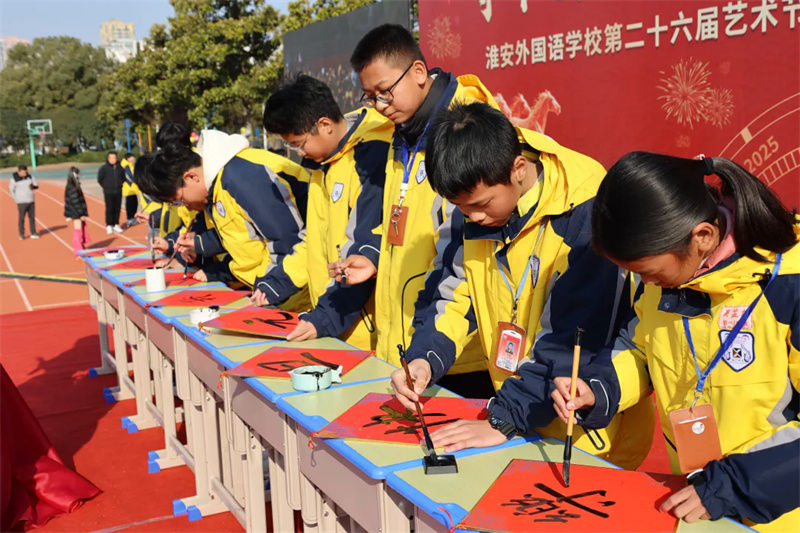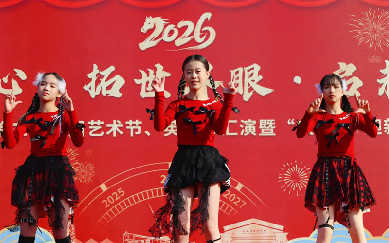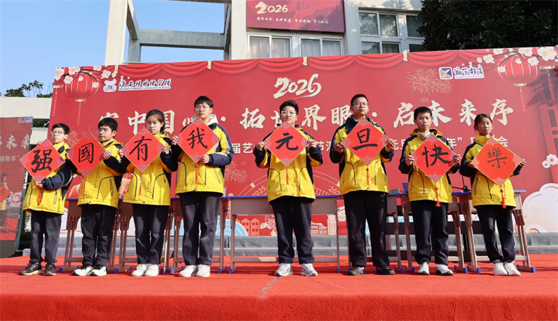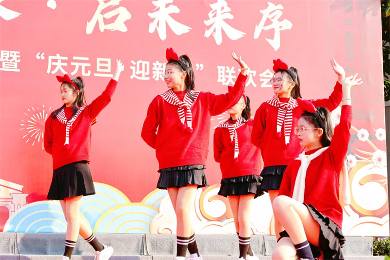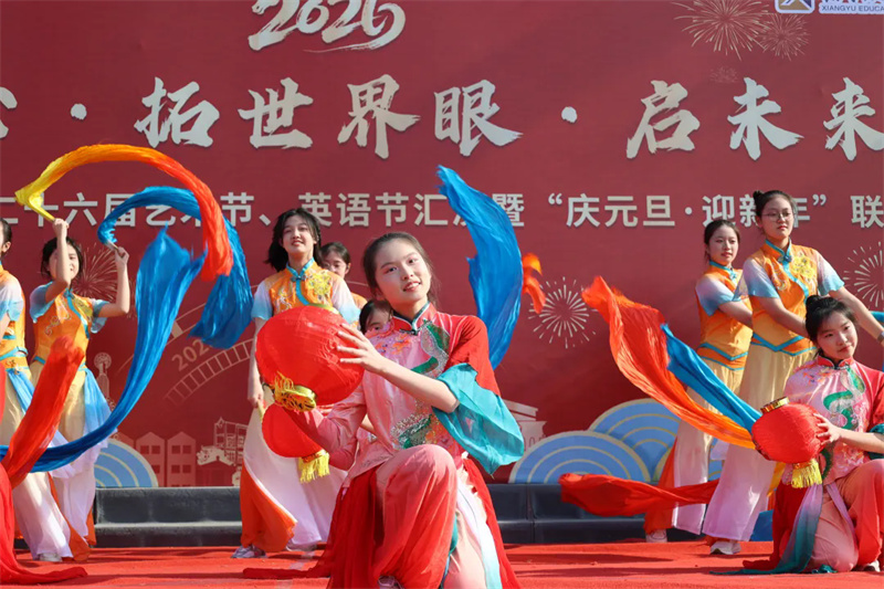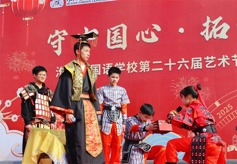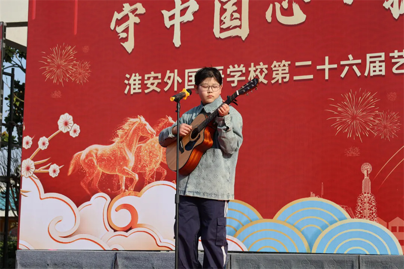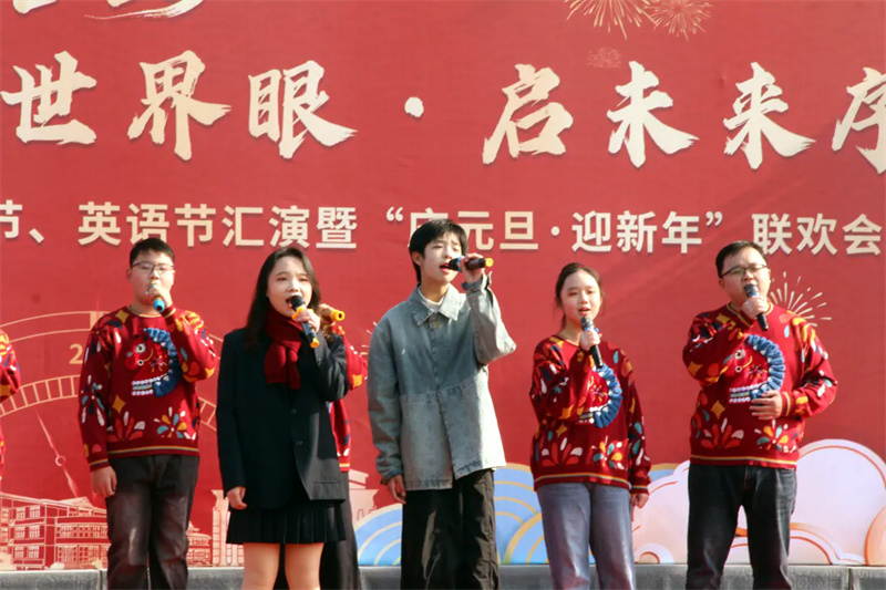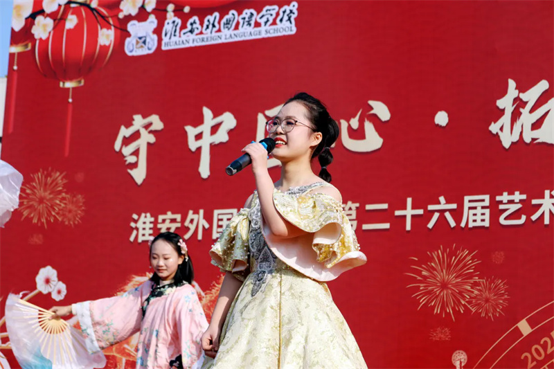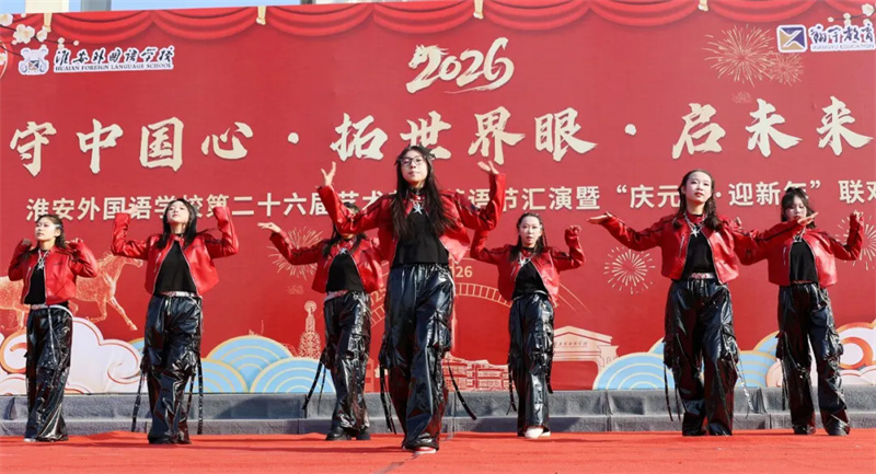 12月27日午后,暖阳倾洒,淮安外国语学校运动场上一片欢腾。彩旗招展,乐声回荡,学校第26届艺术节、英语节汇演暨“庆元旦·迎新年”联欢会在冬日晴空下活力启幕。本次活动以“守中国心、拓世界眼、启未来序”为主题,融传统韵味、时代气息与国际视野于一体,以青春之名,唱响新年序曲。淮安外国语学校校长赵树青及校务会成员全程参加活动,本次演出由初三(5)班高妍汐、初三(4)班杨洪懿、初三(11)班戴梓歆、初三(5)班刘峻希联袂主持。