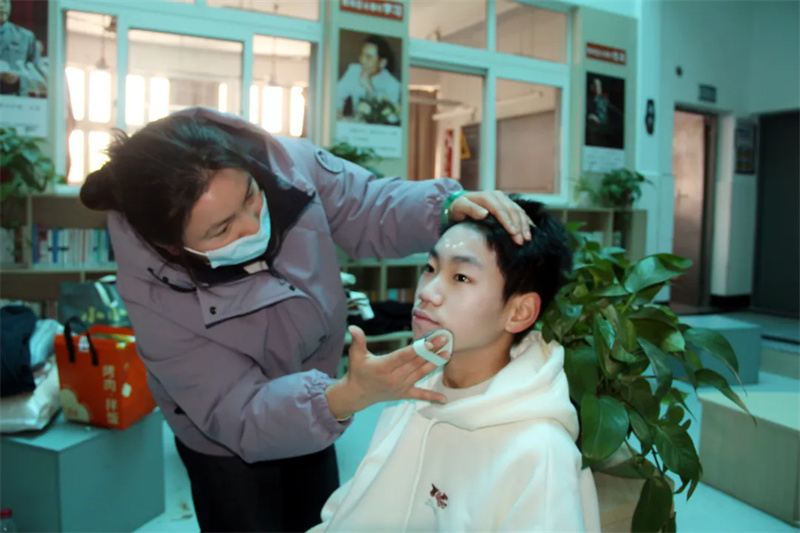节目间隙,活动穿插的灯谜竞猜环节趣味十足,同学们争相作答,现场笑声不断。与此同时,舞台上,书法社团的8位学子正屏气凝神,挥毫泼墨,“元旦快乐,强国有我”八个大字,一气呵成。墨香透过纸背,伴着喝彩弥漫整个舞台。在现场热烈的掌声中,赵树青校长为灯谜竞猜获奖的同学颁奖并合影留念。