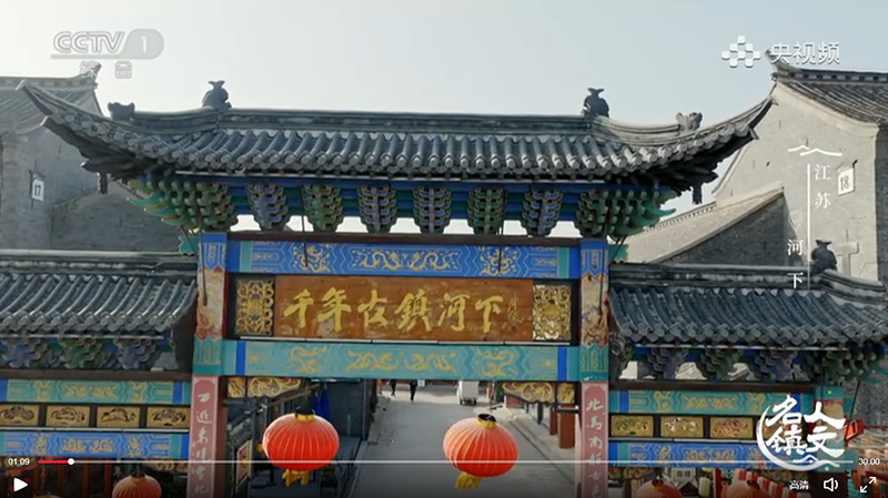 2026年1月8日晚,纪录片《人文名镇·江苏河下》在央视综合频道(CCTV-1)播出,央视频、央视网同步上线。节目引领观众走进江苏淮安运河畔的河下古镇,深入探寻其因运河而兴的悠久历史与丰厚人文积淀。
