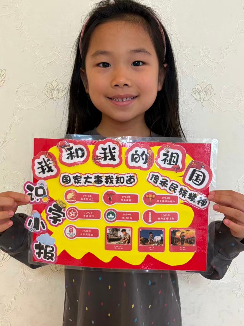 金秋的阳光像柔软的蜂蜜,洒在每一张兴奋的小脸上。在祖国妈妈76岁生日到来之际,滨河淮外小学部一年级的小朋友们举办了一场别开生面的“汉字小精灵贺国庆”识字小报活动!就在这充满欢声笑语的节日里,他们拿起五彩的画笔,要用刚刚认识的汉字好朋友,为祖国妈妈“拼”出一封最美丽的信,带他们心中最神圣的地方旅行。