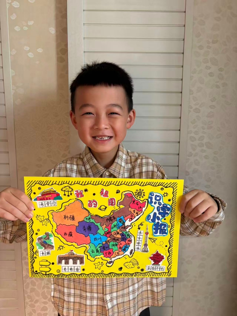 当滨河淮外的孩子们把“中国”二字深情地贴在地图上时,那份归属感与自豪感,便如同种子般落入了心田。他们用指尖的创意,触摸到了祖国的脉搏。这一次,爱国不再是一个宏大的词语,而是长城砖石间的触摸,是天安门阳光下的仰望,是火箭冲向云霄的欢呼——它成了孩子们手中最真实、最温暖、充满创造力的童年表达。