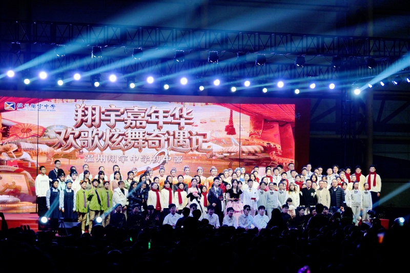 12月31日晚,温州翔宇中学陆坚运动馆内,“翔宇嘉年华·欢歌炫舞奇遇记”初中部跨年晚会温情启幕。校领导、家长代表与初中部全体师生齐聚一堂,共同参与这场不仅是文艺汇演、更是一堂生动“美育实践课”的盛会。师生同台、学科融合、情感共鸣,生动诠释了“让校园成为汇聚美好事物的中心”的育人理念。晚会由吴若绮、周婼茜、麻锦浩、叶镇彰联袂主持。