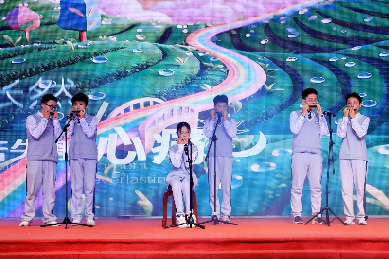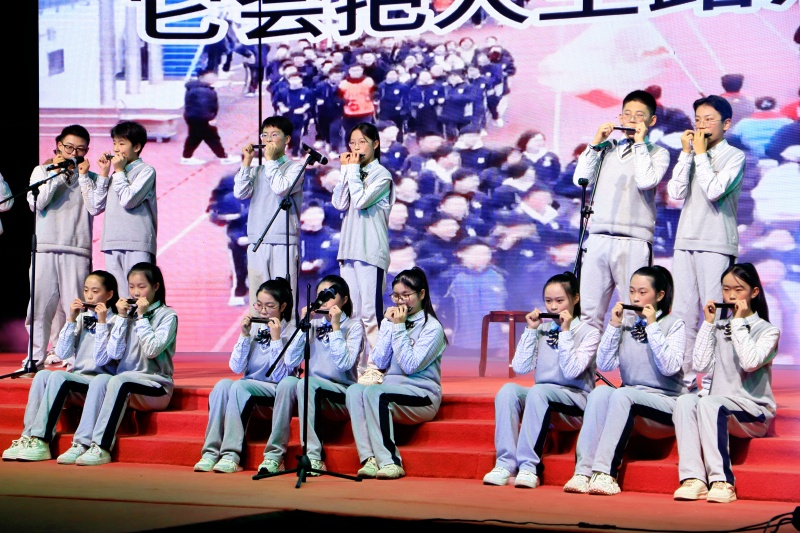 民乐舞韵社演绎的《兰亭序》,让千年风雅在校园重现;口琴合奏《不要慌,太阳下去有月光》则以现代乐器传递治愈力量。节目在古典与现代间自如流转,不仅展现了学生们的艺术素养,更折射出学校在文化育人中的用心——让传统之美浸润青春,让现代表达扎根人文。