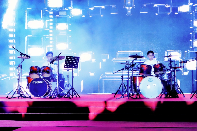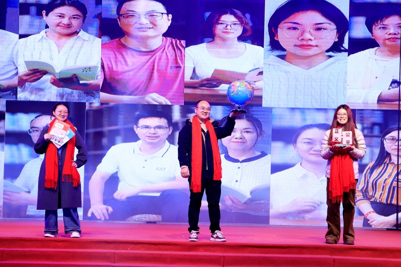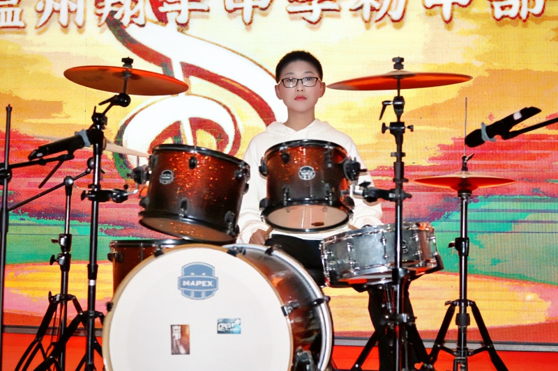 晚会上,学科知识与艺术表达悄然交织。科学组教师带来的《神奇魔法师》,将实验室搬上舞台,绚烂的极光、璀璨的火花,让探索精神在学子惊叹声中传递;英语学科中心选送的《New divide》架子鼓演奏与《try everything》合唱,彰显语言与节奏的跨界魅力;师生原创朗诵《向着明亮那方》,则把德育与文学浸润于铿锵词句之中。教育不再局限于课本,而是在舞台上自由生长。