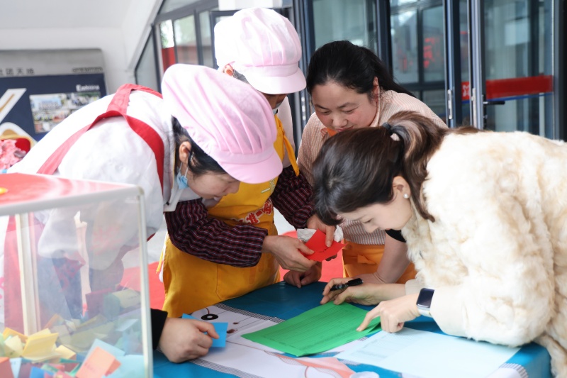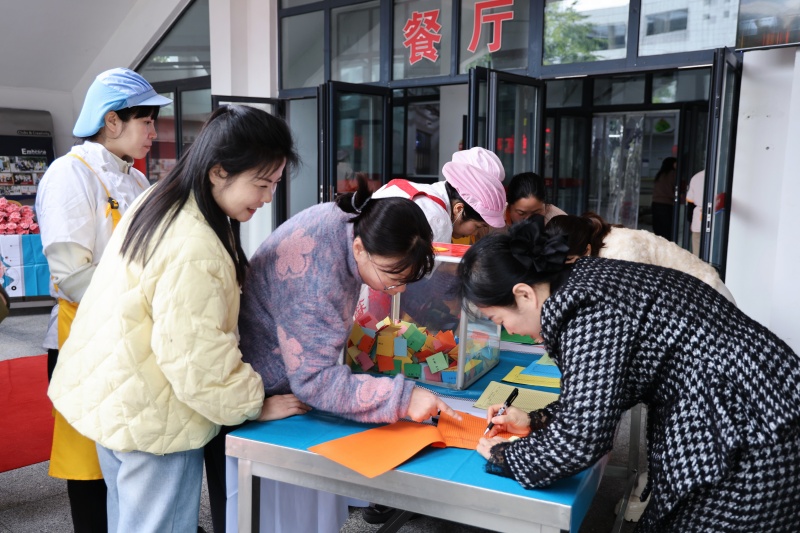 餐厅另一侧,惊喜礼品抽奖区前排起了小队。总校工会主席栾鸾正笑着为大家登记“盲盒礼物”,每一份惊喜都藏着用心。