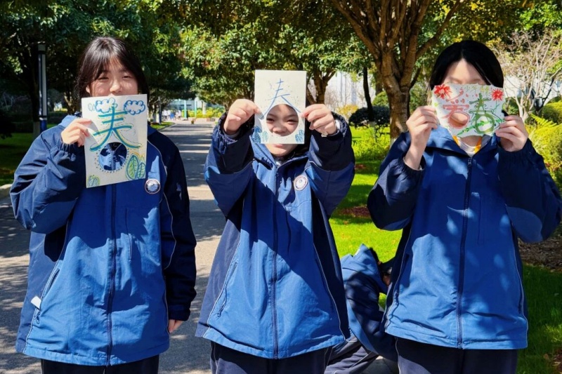 ͬѧÃÇÈýÎå³ÉȺ£¬ÔÚУ԰µÄ¸÷¸ö½ÇÂäѰÕÒ×ÅÊôÓÚ×Ô¼º¡°ºº×Ö¡±µÄ´º¾°¡£ÓеĶ×ÔÚ»¨Ì³±ß£¬×Ðϸµ÷Õû½Ç¶È£¬Èá°»¨¡±×ÖÇ¡ºÃ¿òסһ¶äÍêÕûµÄ¶þÔÂÀ¼£»ÓеľÙ×Å¡°Ê÷¡±×Ö£¬¶ÔןոճéÑ¿µÄÒøÐÓÊ÷£¬¼Ç¼ÏÂÐÂÂÌÓ뺺×ֵĶԻ°¡£